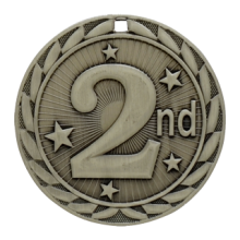 The 2" placing iron sculptured medals depict a 1st (antique gold), 2nd (antique silver) or 3rd (antique bronze).