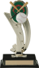 A gold banner of stars decorates the pillar which holds a 3D baseball and bats. 8" trophy has a black base.