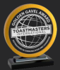 The Jupiter glass award comes in a variety of border colors and stands on a black glass base.