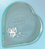 The tapered design allows this heart to stand on its edge without the need of a base. Bevelled edges highlight the top of the jade-coloured acrylic heart. The lasered area becomes frosty white, displaying your message and artwork beautifully.