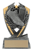 This 6" pewter and gold resin shows a laurel surrounding a running shoe and stop watch.