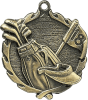 1 3/4" 3D Sculptured Golf medal depicting an 18th hole flag, visor and golf bag full of clubs.