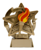 A gold star is the backdrop for a victory torch and colour flame. 5" height.