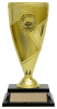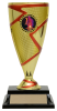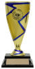 With a modern splach of colour and an optional 1" mylar insert to accent the center section of the cup, this trophy can be personalized while economically suiting all types of events. Gold trophy with accent colour choice of red, green, blue, gold, and black. Comes with a slim rectangle black base. View available insert options here. Please specify color accent choice and insert choice in the comment section below.