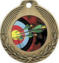 This 1 3/4" insert medal with a small wreath holds a 1" mylar insert. A list of available inserts can be found here. Please specify your choice when ordering.