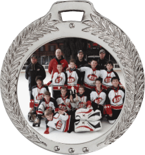 Wreath insert medal holds a 1" mylar insert. A list of available inserts can be found here. Please specify your choice when ordering.