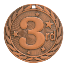 The 2" placing iron sculptured medals depict a 1st (antique gold), 2nd (antique silver) or 3rd (antique bronze).