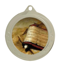 This medal is available in antique gold, bright gold, antique silver, bright silver, and antique bronze.