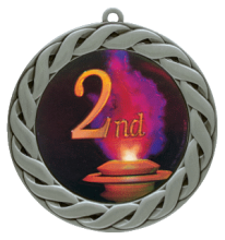The lattice insert medal holds a 2" mylar insert. A list of available inserts can be found here. Please specify your choice when ordering.