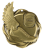 This 3" Track Fusion Medal depicts a winged cleat and a stopwatch.