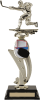 A hockey figure stands on a gold star riser which holds a full colour 3D hockey scene. Available with male or female figure, or goalie. 13" trophy has a black base.