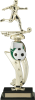 A soccer figure stands on a gold star riser which holds a full colour 3D soccer scene. Available with male or female figure. 13" trophy has a black base.