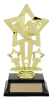 This 7" gold trophy features three little stars adorning one larger star and depicts a soccer ball and cleat..