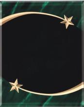 Gold shooting stars add accent to the band of colour on the top and bottom. Your personalization turns white on the black centre of this acrylic award when laser engraved.