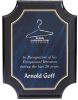 Your personalization shows white on the red or blue marble, with gold trim and a black border on this acrylic plaque. A modern alternative to traditional wood plaques.