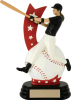 This 7" All-Star Female Trophy features a baseball and a player batting, with a red ribbon.