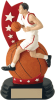 An over-sized ball is the pedestal for this all-star basketball player, surrounded by a red banner of stars. The 7" resin trophy has a black base.