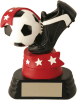 A red banner of stars holds aloft a soccer ball and cleat in this 5 1/4" resin trophy with a black base.