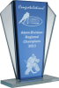Sandcarved personalization on the Amherst award creates a frosted look on the blue mirror panel in the center of this economical yet decorative award, completed with mirrored pieces.