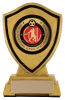 This golden Armour resin with black outline accents features space for a personalized plate at the bottom of the resin and a 2" disc or mylar of your choice in the centre of the shield.