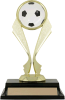 This 7 1/8" trophy has a black base and a gold star which holds a black and white soccer ball.