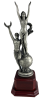 Celebrate an achievement with this elegant 15" award. This large trophy features a male and female standing victorious on a globe sitting on a rosewood base. This is an excellent award to recognize an athletic champion.
