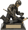 Aztec gold goalie makes the save in this 6" hockey trophy.