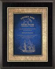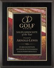 Combine an eco-friendly bamboo plaque with the dynamic look of an acrylic art plate. Shown with a gold art plate. Art plates available in four colours: Abstract, gold, blue, or red. Please specify colour of art plate in the comments section below.