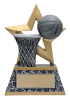 The 6" Rockstar resin series features an antique pewter finish and metallic gold accents. This Basketball Rockstar Resin depicts a basketball, net and a gold star.