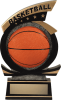 Stars and gold accents highlight the central 3-dimensional basketball in this 7" resin sport trophy.