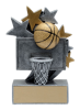 The 4 3/4" Star Blast resin series features an antique pewter finish and metallic gold accents. This Basketball Star Blast Resin depicts a basketball and net.