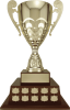 The Bianchi metal cup comes in gold or silver, on a walnut finish square base tall enough for two rows of annuals on each side, with a smaller top tier for the title plate.