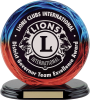 The multi-colours of the Corona dance around the black interior of the acrylic award, which sits on a black piano finish base.