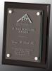 Recommended personalization method: Sandcarving on the glass plaque, with optional laser engraving with silver colour fill on the black plaque.