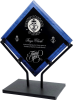 The Paragon award has a modern, sophisticated look. Black acrylic is surrounded by a blue frame, and displayed in a black stand as a piece of art.