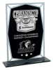 This glass award features a black personalization area with a clear border.