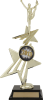 A cheerleading figure stands on a gold shooting star riser with a colourful 2" cheerleading insert.