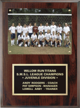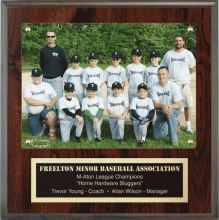 The photo is recessed in these cherrywood laminate plaques, then protected by an acrylic lens.