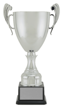 The Clarrington cup features a smooth-textured cup with flabellate shaped handles which gives the trophy a victorious appearance. Available in either a gold or silver finish.