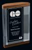 This extra thick freestanding award features a clear acrylic midsection with solid walnut trimmings to give a professional appearance.