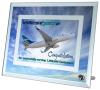 Can be displayed in either portrait or landscape orientation, and includes a decorative stand.