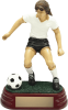 This resin trophy features a full colour female soccer player on a rosewood coloured base. 6" total height.