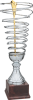 Imported from Italy, this trophy cup features a silver metal spiral adorned with a gold metal leaf in the centre, silver plastic stem, and brown plastic base. 15" height