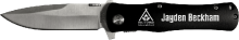 This high quality folding knife features a locking blade and a black handle which can be personalized.