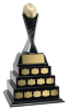 Calling all football players and fans! Nothing showcases a football winner more beautifully than the World Class annual football trophy. Standing 18 3/4" high, this trophy features a gold football showcased on top of a pewter and black tower attached to a black base that can have the trophy title personalized on it, followed by three tiers to place the lucky winners names on. The trophy topper is also available as an individual award in two different sizes. To see the keeper verisions of this series, please click here.