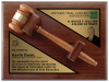 A 10" wood gavel with engravable brass band is displayed on a 9" x 12" plaque.