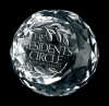 Halo optic crystal paperweights are available in 2 sizes and come in an elegant satin lined gift box.