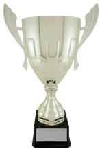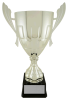 This large metal cup on a black base comes in silver or gold.