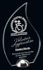 This Juniper glass award feautres flame shaped glass with a silver colour half-sphere base.
