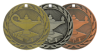 The 2" knowledge iron sculptured medal depicts a lamp of knowledge and books.